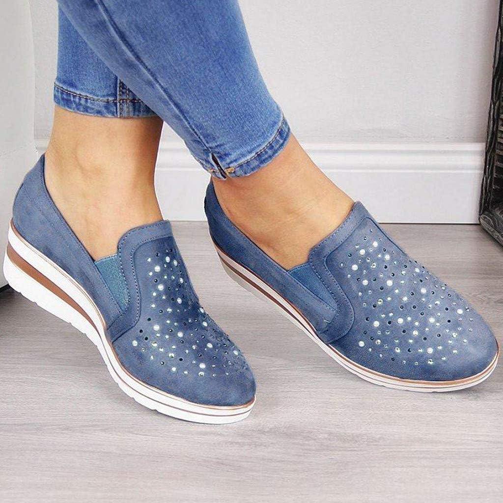 Kauneus Womens Rhinestone Wedges blue casual shoes womens