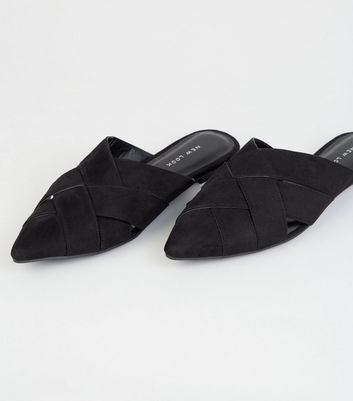 Black Leather-Look Woven Pointed Mules new look mules