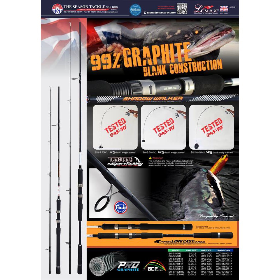 JIGAHOLIC LEMAX SHADOW WALKER 120MH2 12ft fishing rod and reel