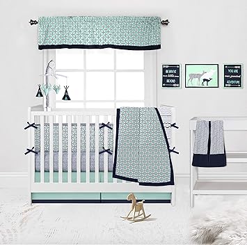 mint and navy crib bedding