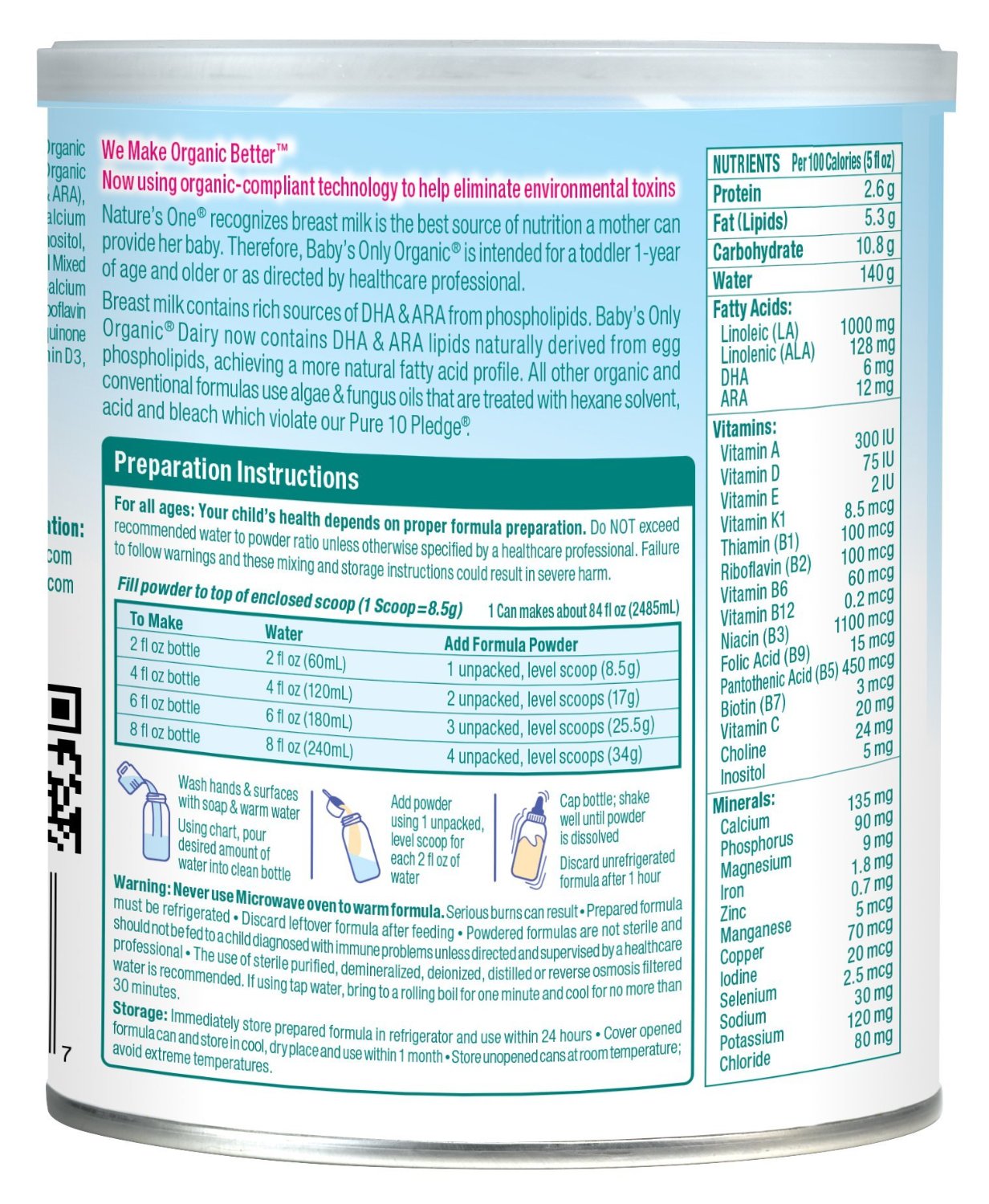 Only Organic DHA \u0026 ARA Toddler Formula baby's only lactorelief ingredients