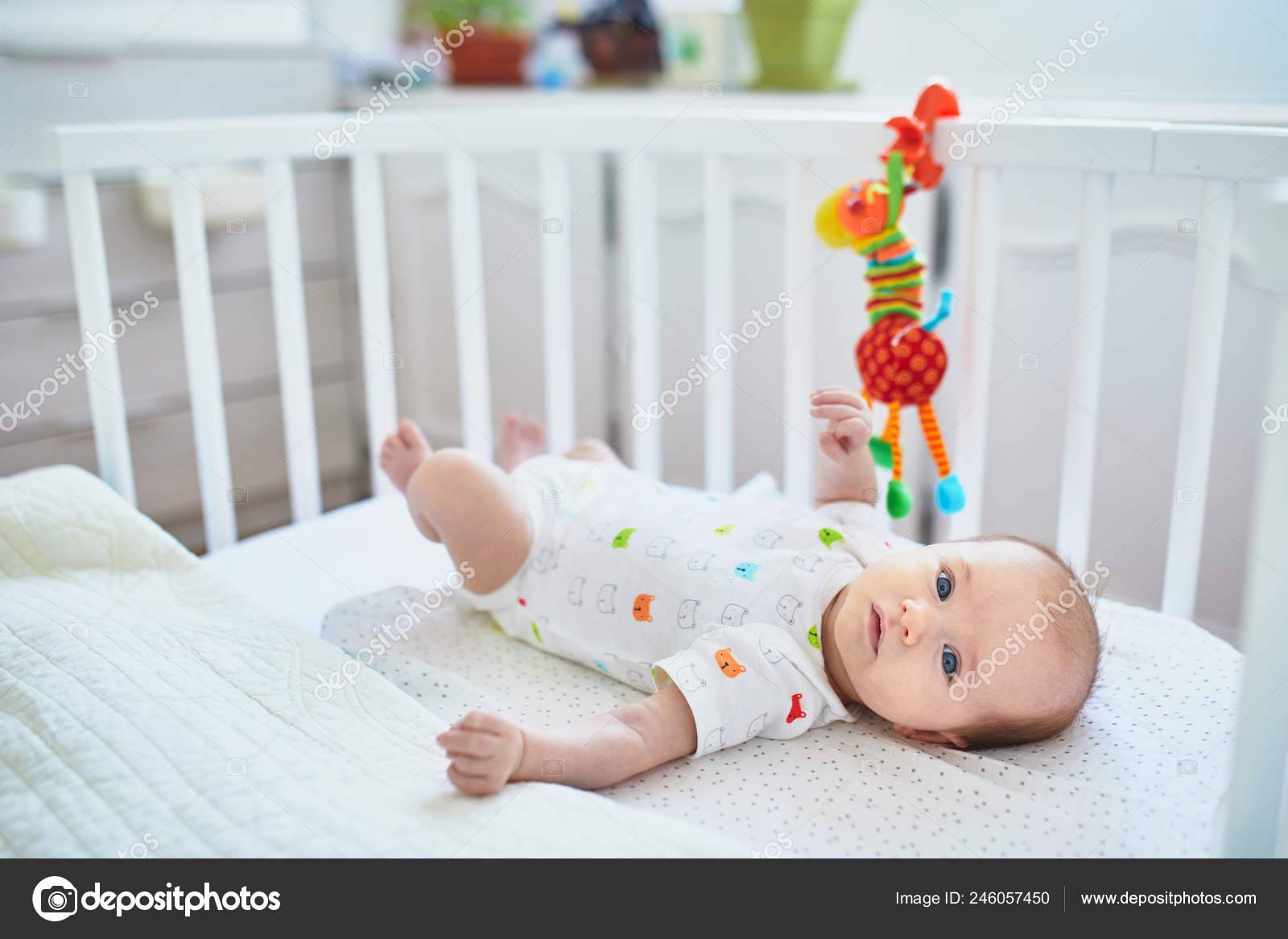 Adorable Baby Girl Lying Crib Little day cot for baby
