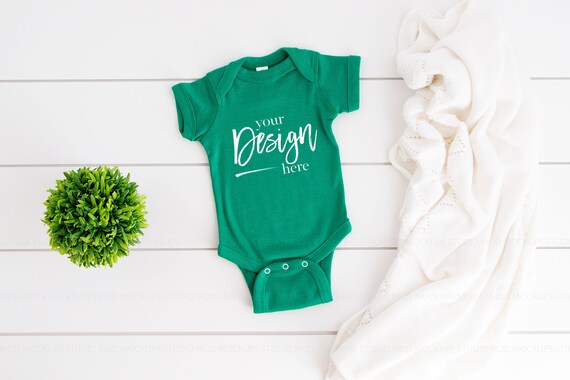 Baby Bodysuit Mockup KELLY Green Baby kelly green baby