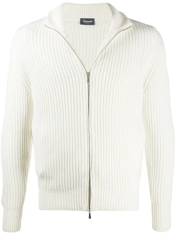 Shop white Drumohr ribbed zip-up jumper white zip up jumper