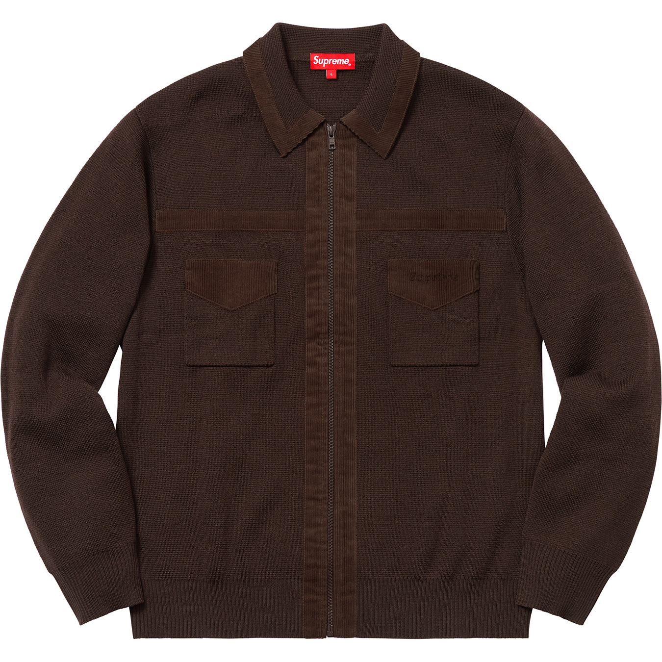 supreme corduroy detailed zip sweater
