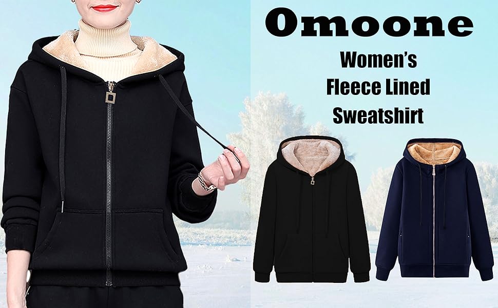 Omoone Women's Zip Up Sherpa Fleece fur lined zip hoodie women's