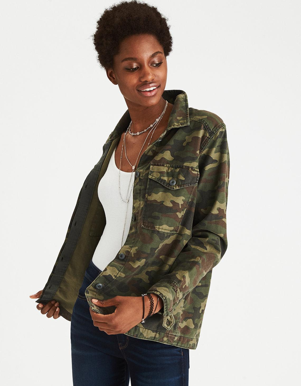 Cotton Embroidered Camo Shirt Jacket camo sweatshirt american eagle
