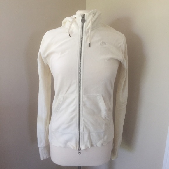 Nike White Velour Sweatshirt Size M white velour hoodie