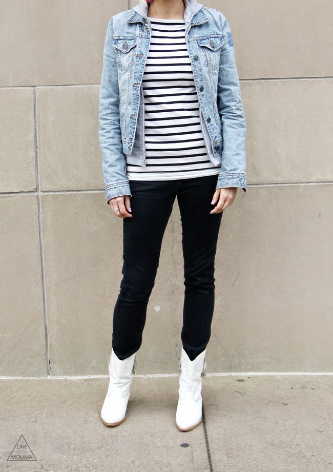 Denim Jacket and White Fringed Boots black denim jacket with white hoodie