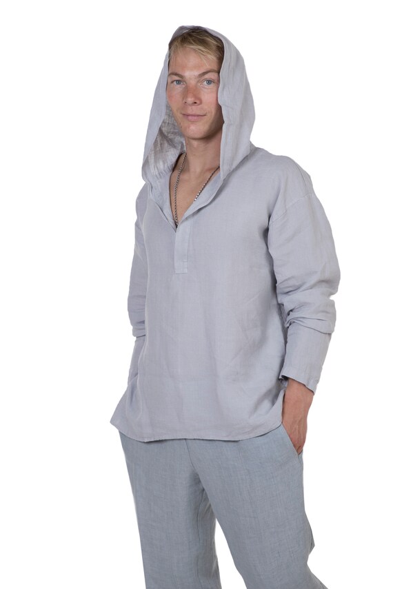 Hooded Drop Shoulder Shirt Mens Linen long sleeve shirt with hood