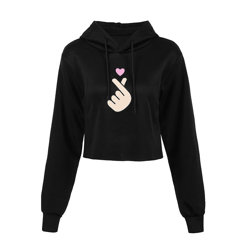 Women Crop Hoodies Hood Sweatshirt Cute sweater with ears on the hood