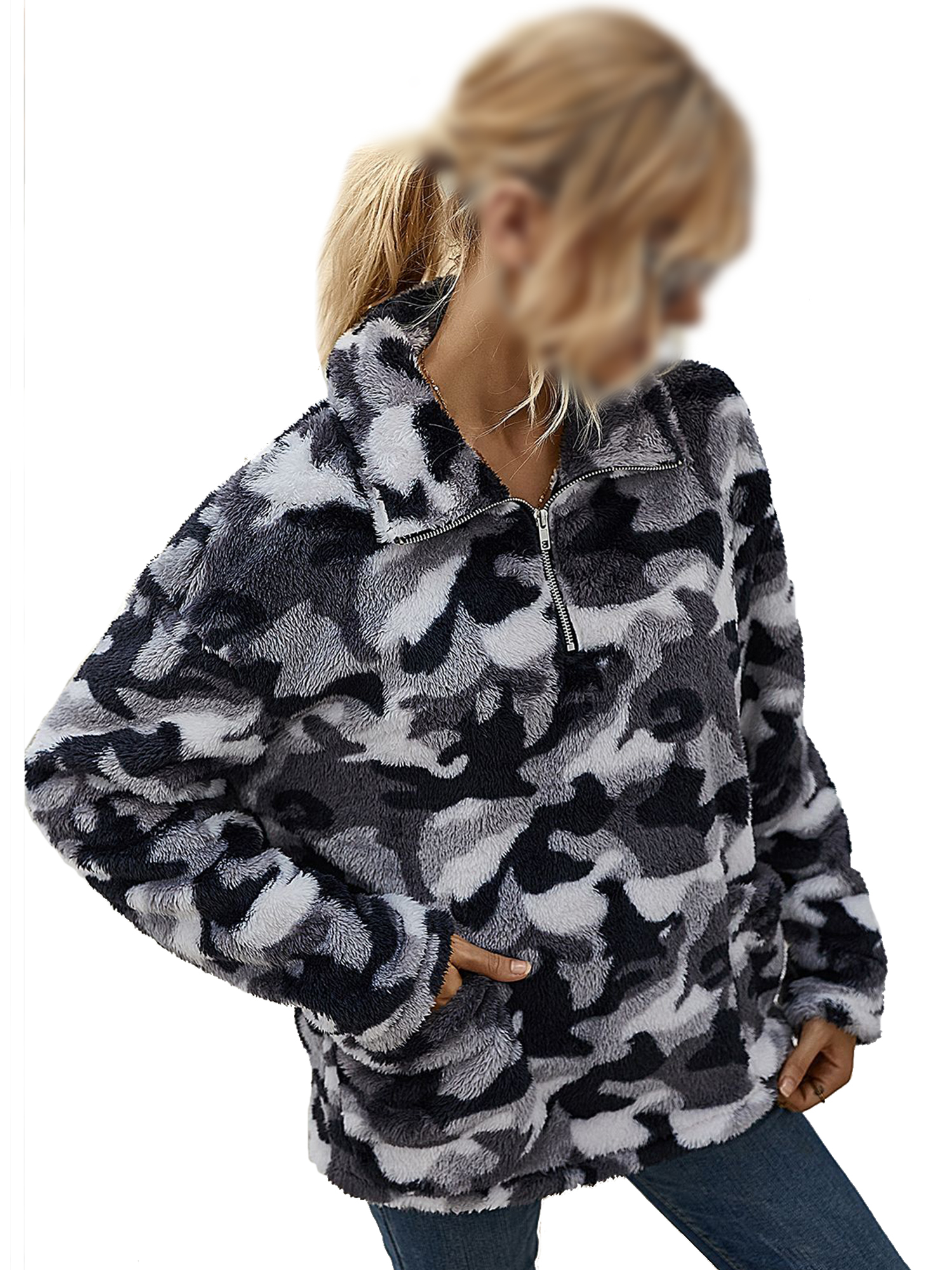 UKAP - Winter Women Camouflage Crew fluffy camo hoodie