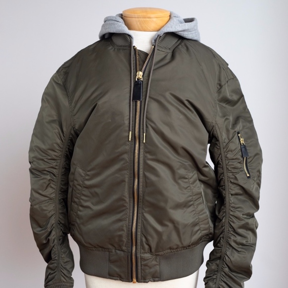 olive green bomber jacket with hood