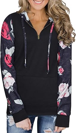 Ranphee Womens Quarter Zip Plain lightweight hooded sweater women's