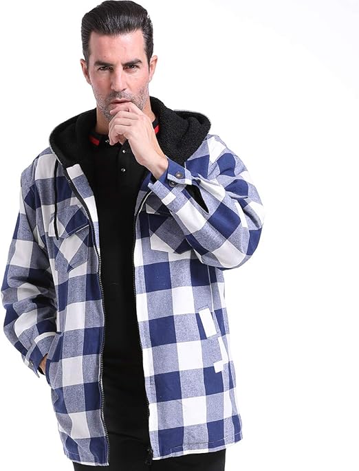 Mens Plaid Jacket Warm Fleece Sherpa men's plaid jacket with hood