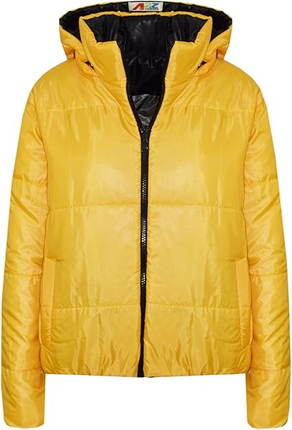 Womens Mustard Faux Fur Padded Coat mustard hooded jacket