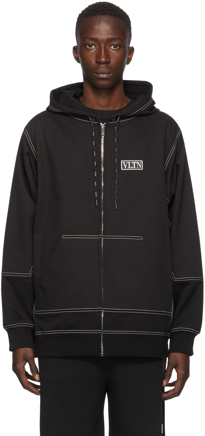 Black 'VLTN' Panel Zip-Up Hoodie by valentino zip up
