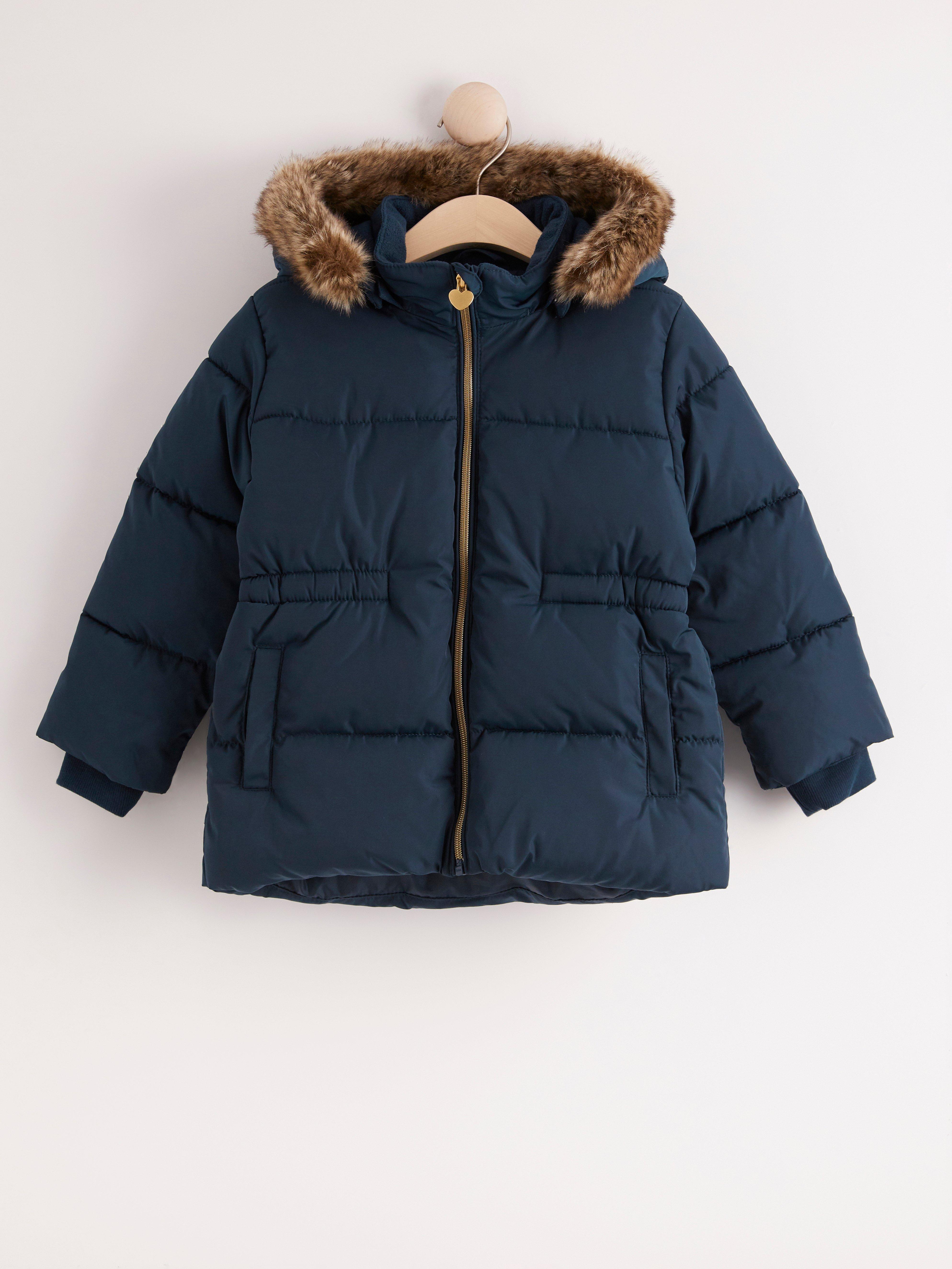 navy blue puffer jacket with hood