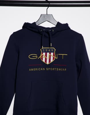 GANT logo hoodie with archive print in gant hoodie navy