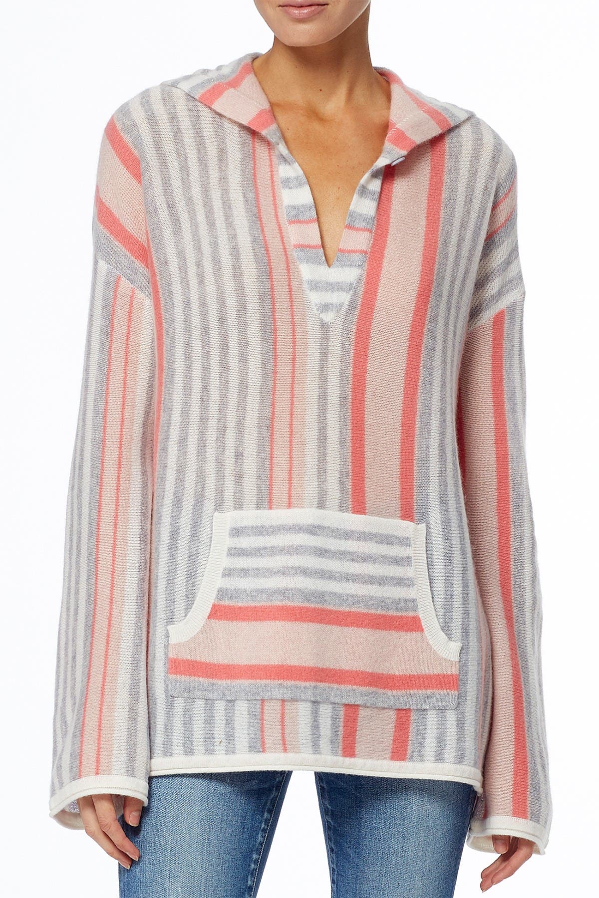 Alya Striped Cashmere Pullover Poncho cashmere pullover hoodie women's