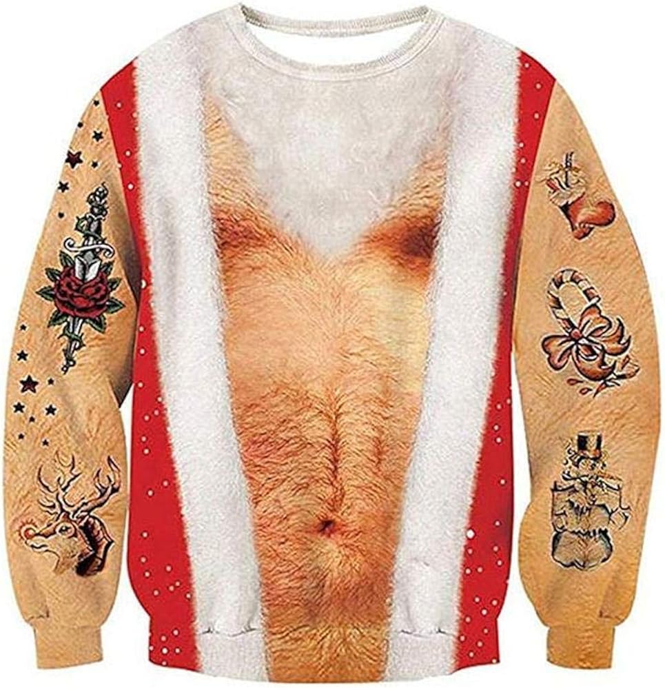 Mens 3D All Over Printed Hairy Chest hairy christmas sweatshirt