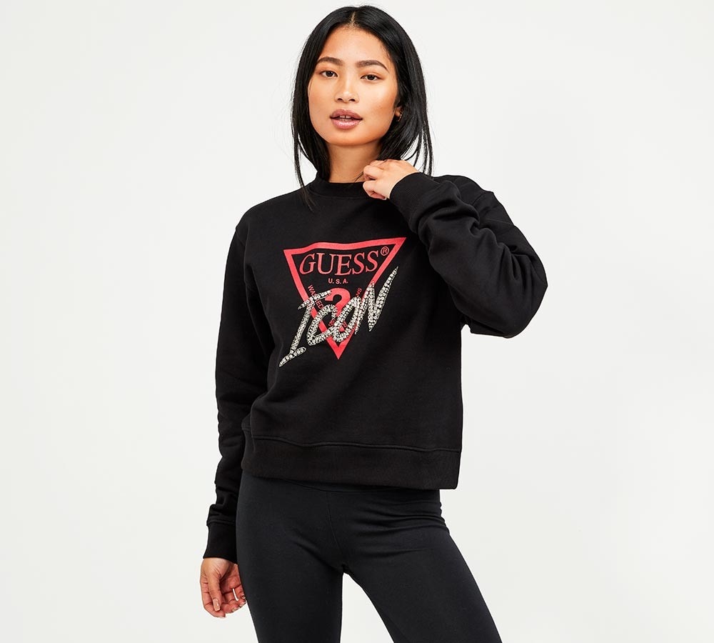Guess Womens Icon Glitter Sweatshirt black guess sweatshirt