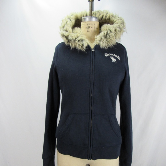Abercrombie Blue Faux Fur Hooded blue hoodie with fur hood