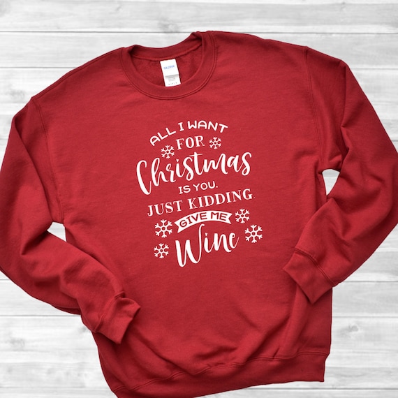 Unisex All I Want For Christmas Wine funny holiday sweatshirts