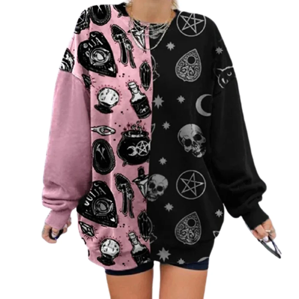 Cartoon Skull Print Sweatshirt Women skull print sweatshirt