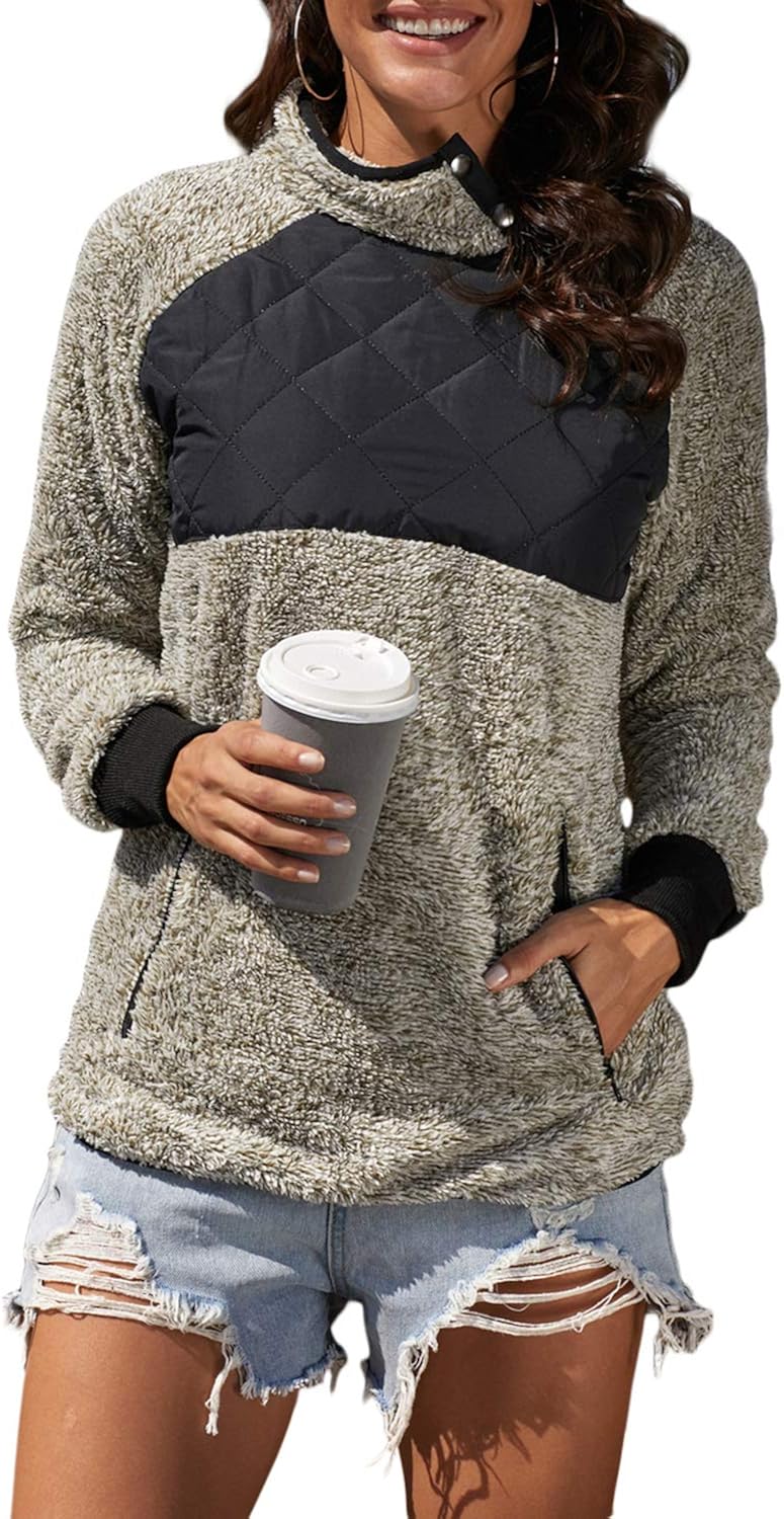Sidefeel Women Button Neck Fleece button neck fleece pullover