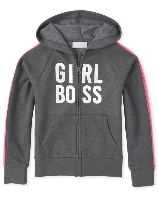 French Terry Zip Up Hoodie black hoodie with rainbow stripe