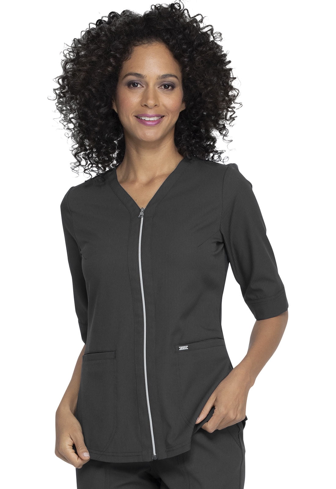 Elle - Elle Scrubs Top for Women Zip Up black zip up top