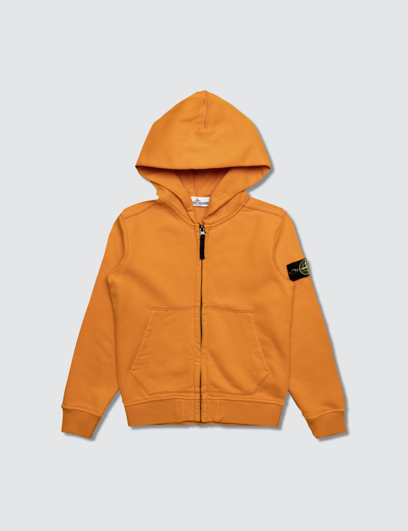 orange stone island zip hoodie