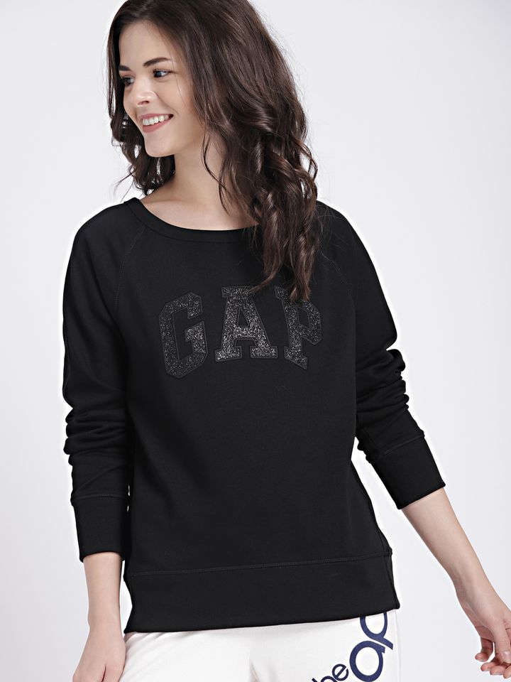 Buy GAP Women's Black Glitter Logo gap sweatshirts myntra