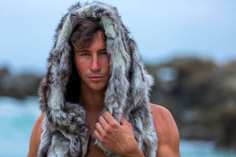 Faux Fur Hooded Vest in Silver Wolf winter vest with fur hood