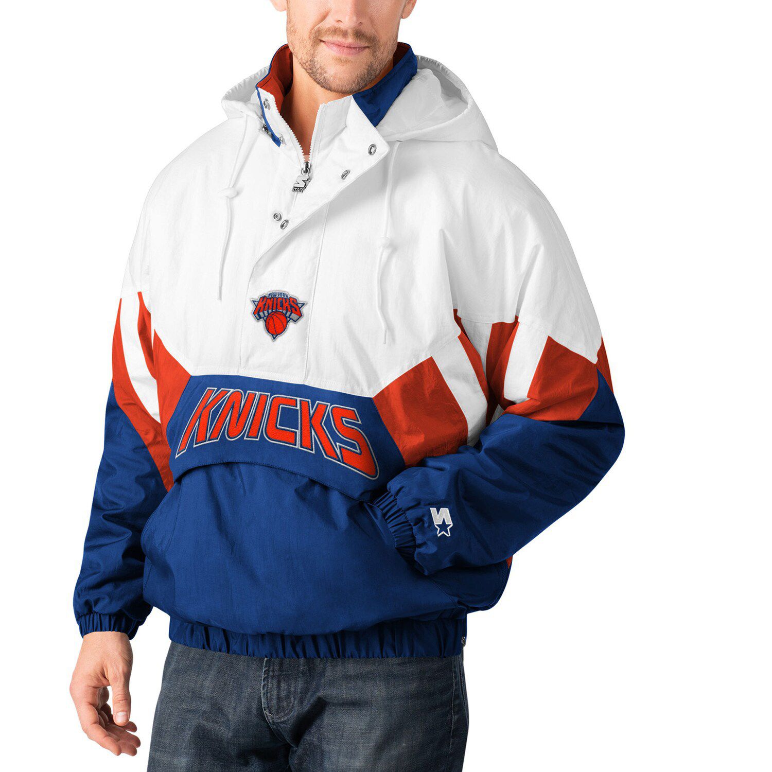 red white and blue quarter zip