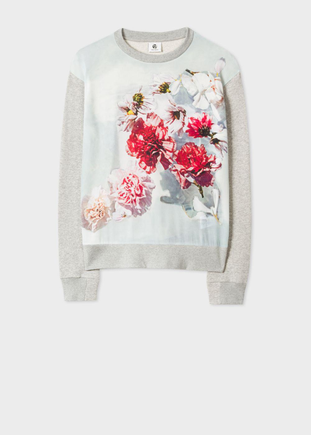 Grey Sweatshirt With Floral Silk Front floral sweatshirt womens