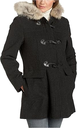 Fur Hooded Toggle Wool Coat womens wool coat with fur hood