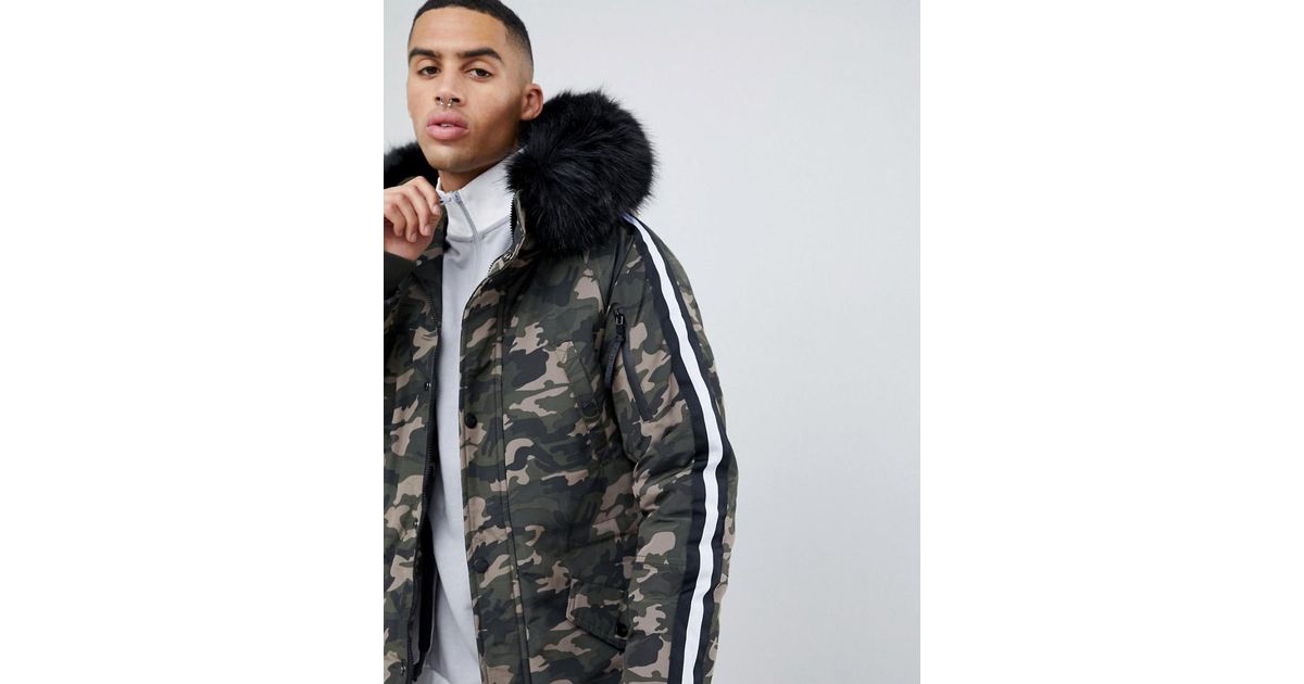 Sixth June parka coat in camo with sixth june parka coat in black with black faux fur hood