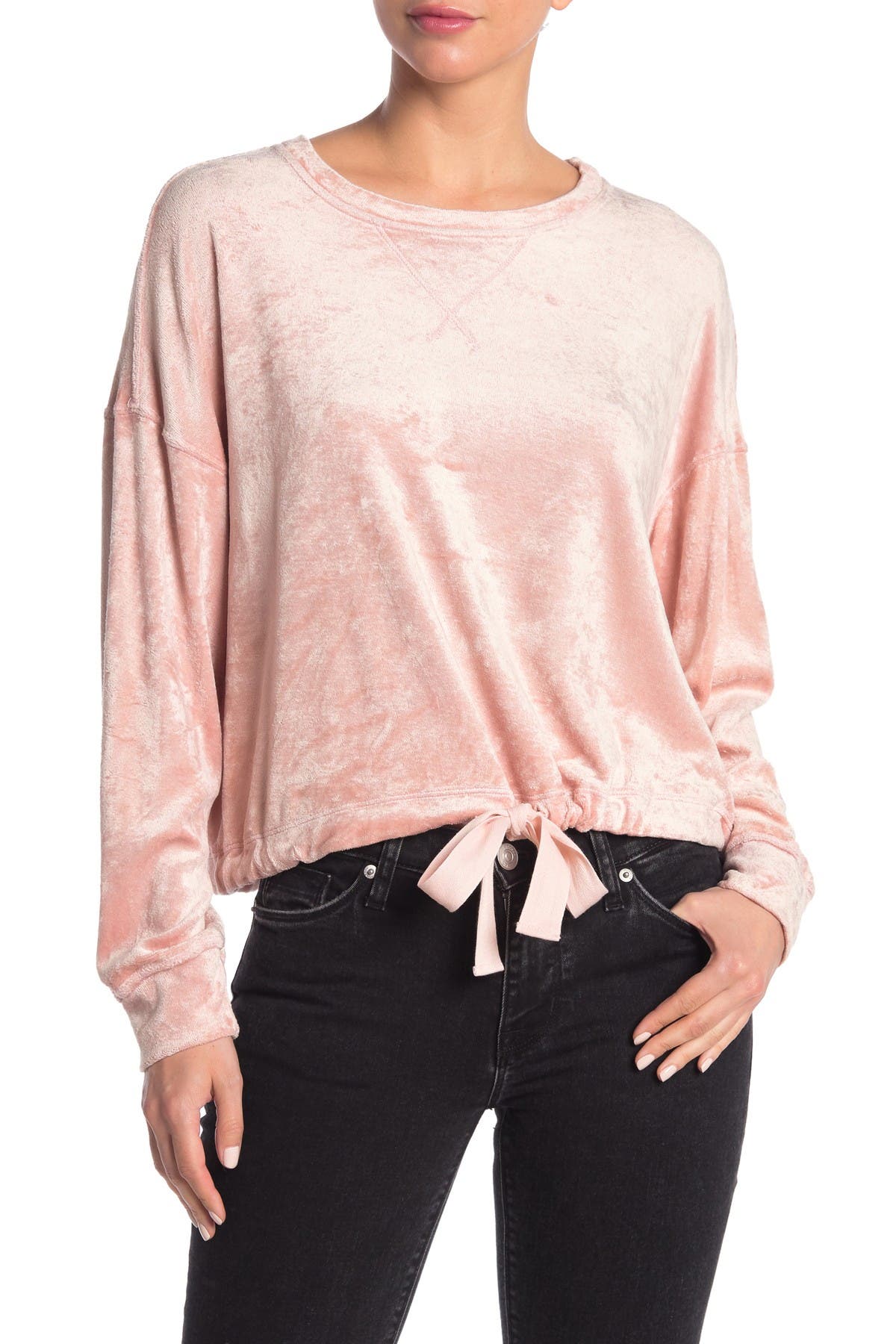 Velour Drawstring Hem Pullover drawstring hem pullover