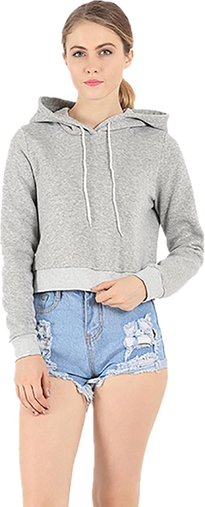 Must Rose Women Plain Hooded Top light grey sweatshirt womens